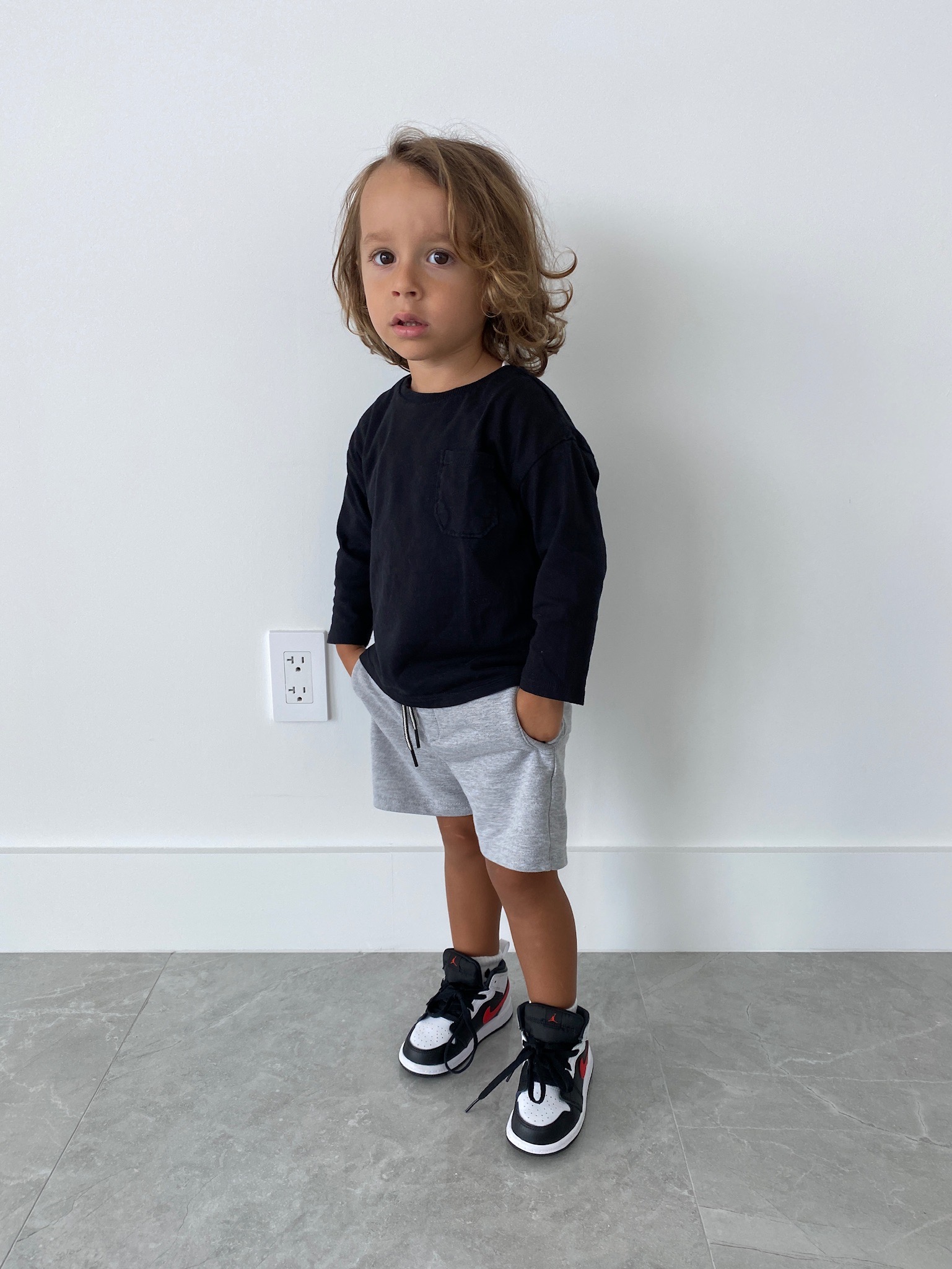 melijoe shorts, toddler style inspo, melijoe, trendy toddler, kids apparel, nike toddler sneakers, nike kids, high-top kids sneaker