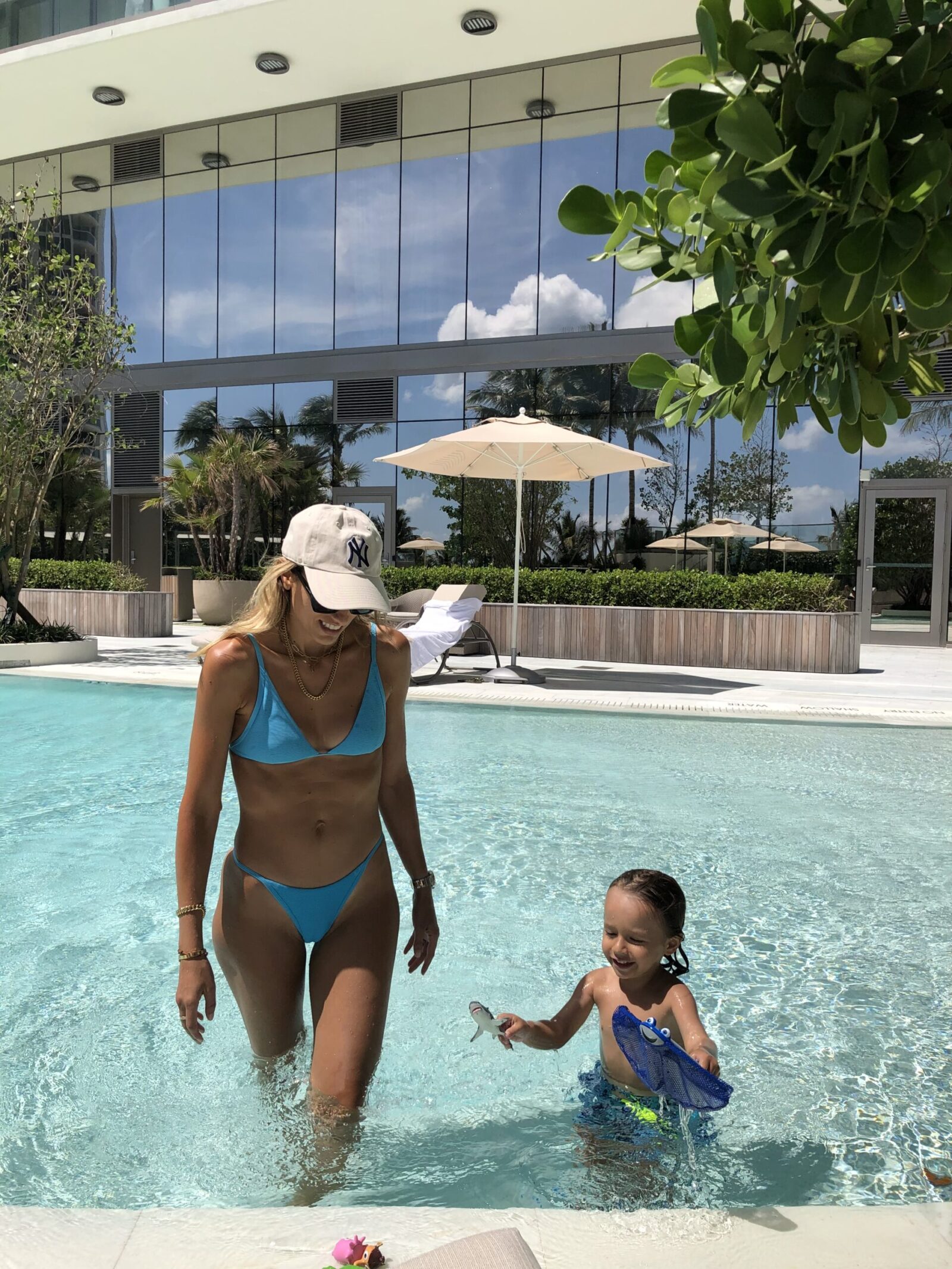 blue lspace bikini, blue triangle bikini, turquoise bikini, mommy blogger, pool style, pool day fashion